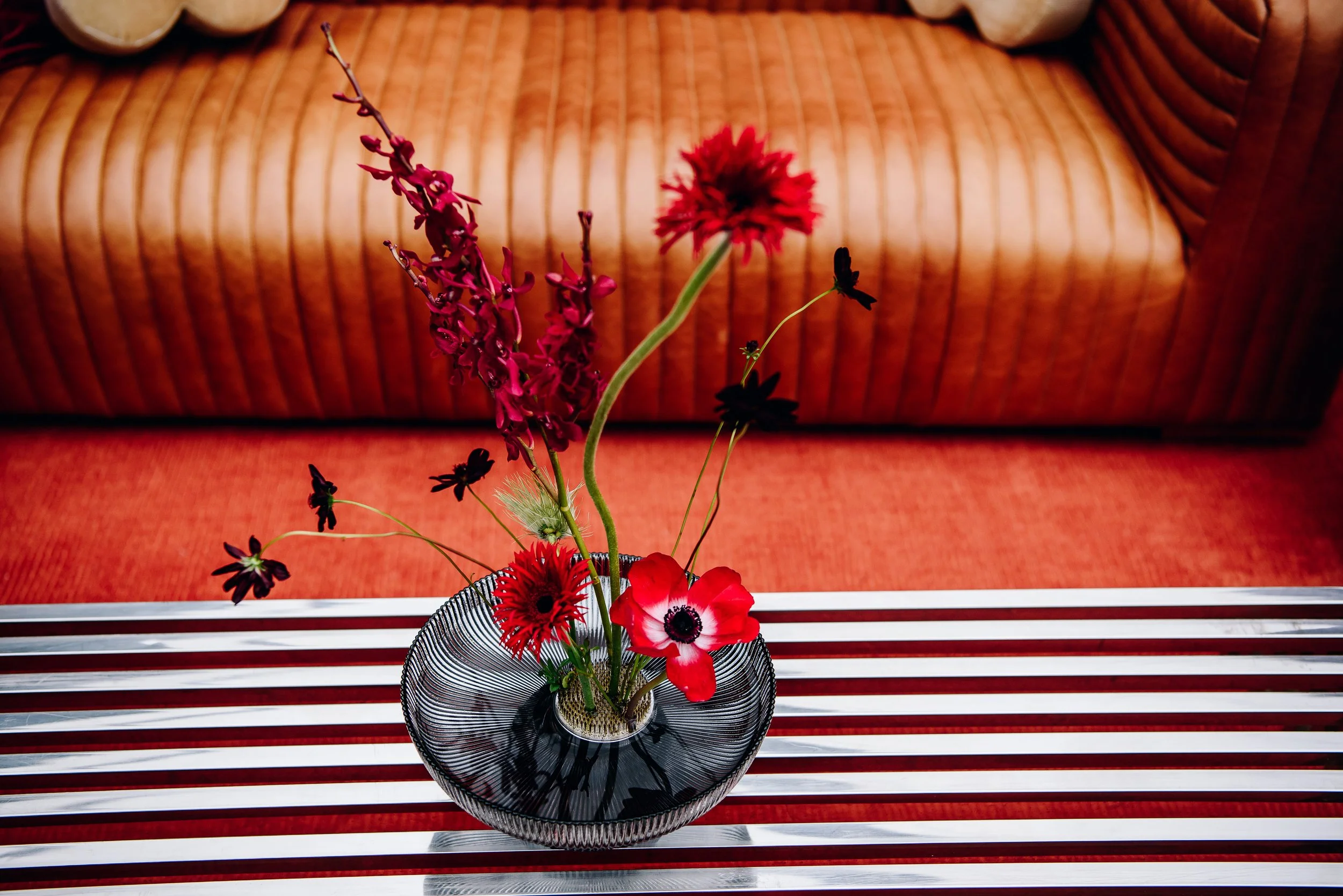Sculptural floral arrangements and plush seating areas provided stylish, comfortable spaces that invited guests to relax and connect.