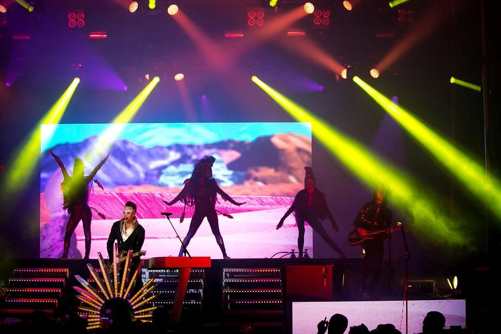 After passing through the garage, a lush backyard with a 40’ tall Absolut bottle awaited guests. Empire of the Sun surprised guests with a unique performance - the 40’ bottle was electrified by 2 tesla coils that synced to the band’s keyboard. EotS was indeed “playing” the bottle and electrifying it to sync with their most popular songs.