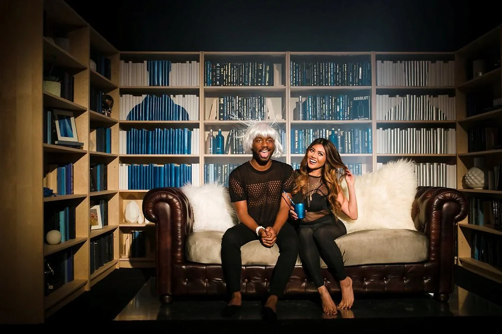 Behind a speakeasy style door, a chesterfield sofa set on a platform beckons guests to take a seat. When ready, electricity ramps up to make your hair stand on end - literally. Absolut bottles and books adorn the walls around the study for a perfect photo moment.